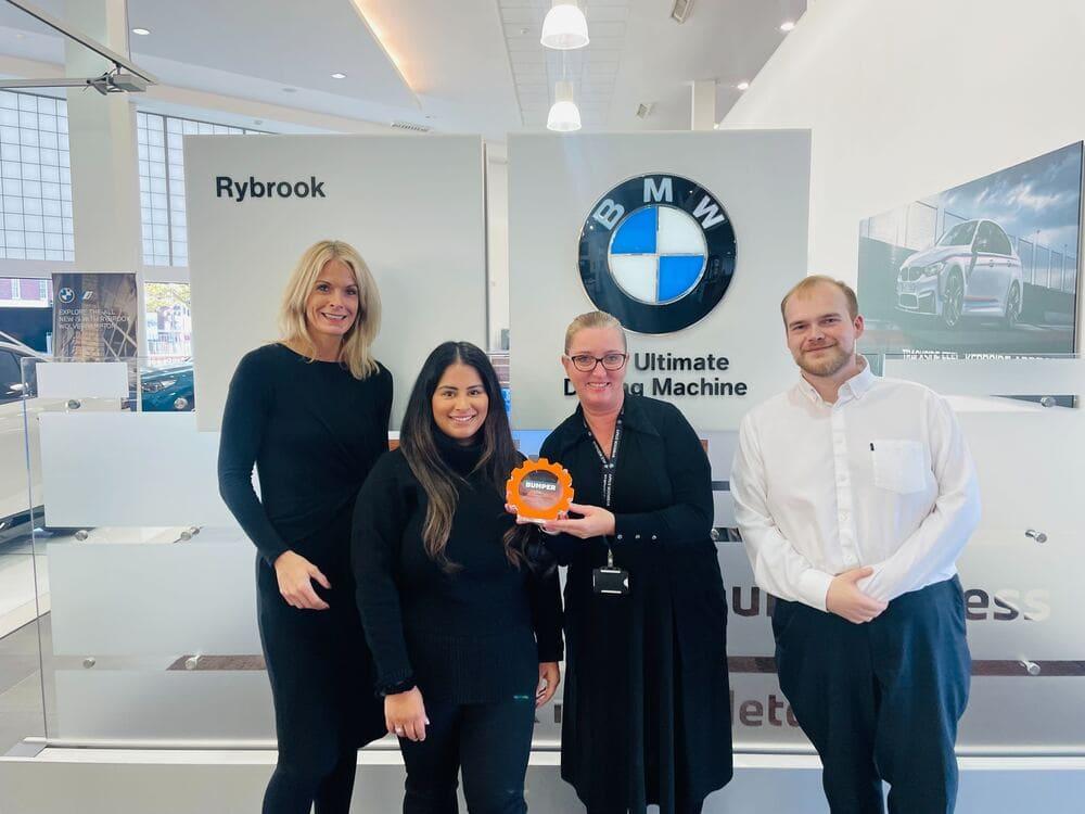 Bumper’s Islay Horton visited the site to hand over the award. ‘I’m really pleased to see Rybrook BMW and MINI Wolverhampton recognised for their fantastic achievement’, said Islay. ‘After implementing PayLater into their everyday conversations with customers the site has seen a huge increase in positive customer feedback and a strong improvement in their KPIs.’