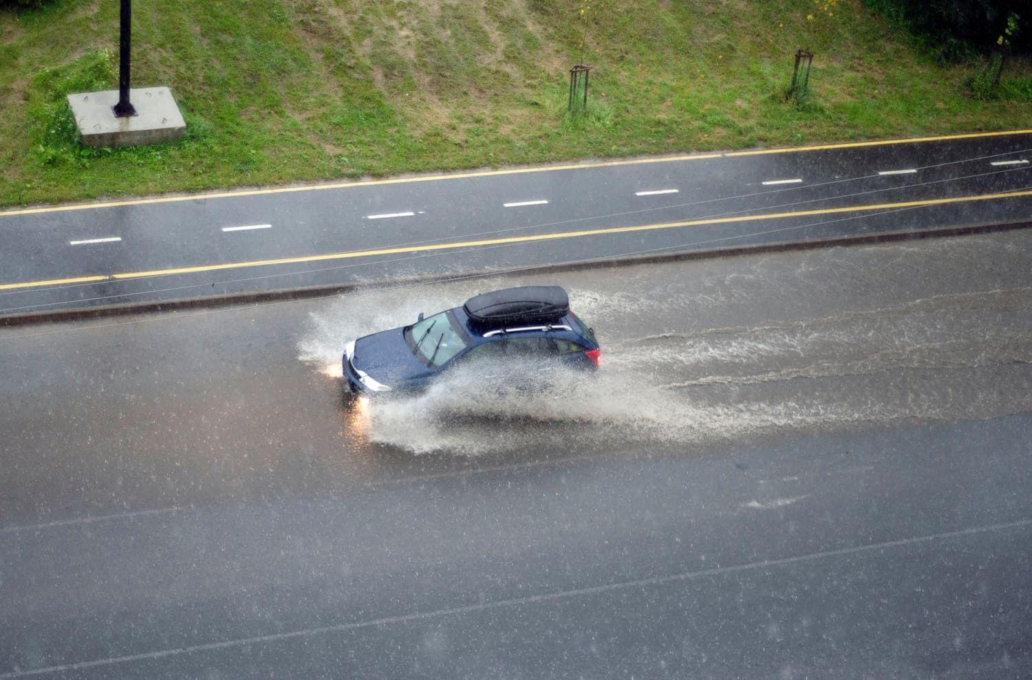 So, how do you avoid hydroplaning? The same way you would during any wet weather: Slow down to give yourself more time to react and keep your distance – ideally, double the usual space between you and the car in front. In storms, a wider gap could mean the difference between stopping safely and rear-ending someone.