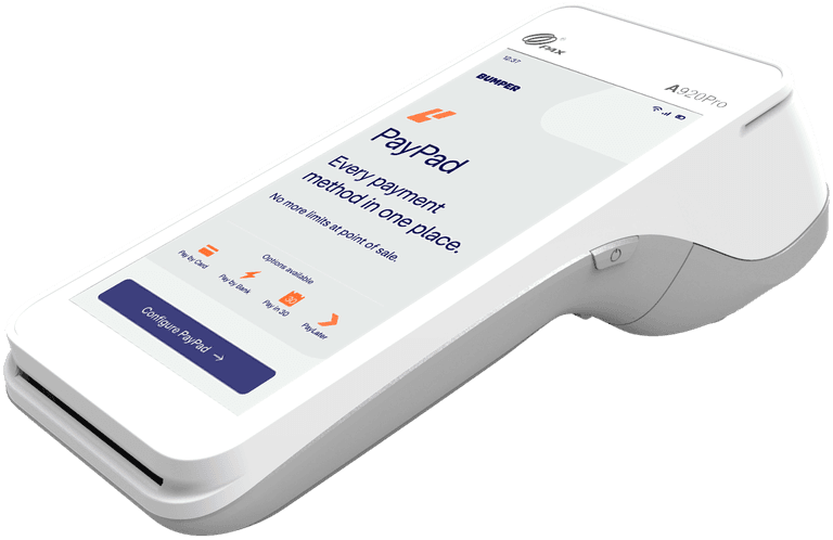Bring the power of digital payments onto the shop floor with Bumper PayPad. You can let your customers pay now or later at the point of sale. And even build in rules to encourage open-banking transfers, reducing your card transaction costs and maximising profit.